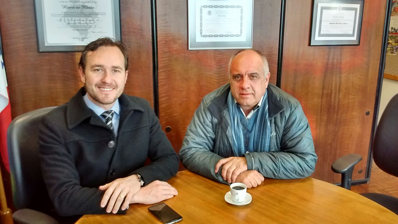 O vice-presidente do Sindicato dos Médicos Veterinários no Estado do Rio Grande do Sul (Simvet/RS), Ricardo Capelli, esteve na Assembleia Legislativa em visita ao deputado Vinícius Ribeiro (PDT) para conversar sobre a questão do trabalho de inspeção de produtos de origem animal. O dirigente apresentou o trabalho realizado pelo Simvet/RS na área. O deputado se colocou à disposição para qualquer tipo de projeto que o sindicato necessite encaminhar via Assembleia Legislativa. O deputado falou do trabalho que está liderando sobre a elaboração da lei para a denominação de origem do queijo serrano.