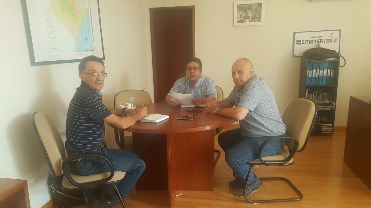 Na manhã desta quarta-feira, 31 de janeiro, os diretores do Sindicato dos Médicos Veterinários no Estado do Rio Grande do Sul (Simvet/RS), Ricardo Capelli e Eloi Portolan, estiveram na Emater tratando de assuntos de interesse dos veterinários da empresa com o diretor técnico da entidade Lino Moura. Na reunião foram tratados assuntos relativos a capacitação técnica dos veterinários da Emater e do aproveitamento dos mesmos como responsáveis técnicos das agroindústrias familiares de origem animal às quais os veterinários tem assistido regularmente.
